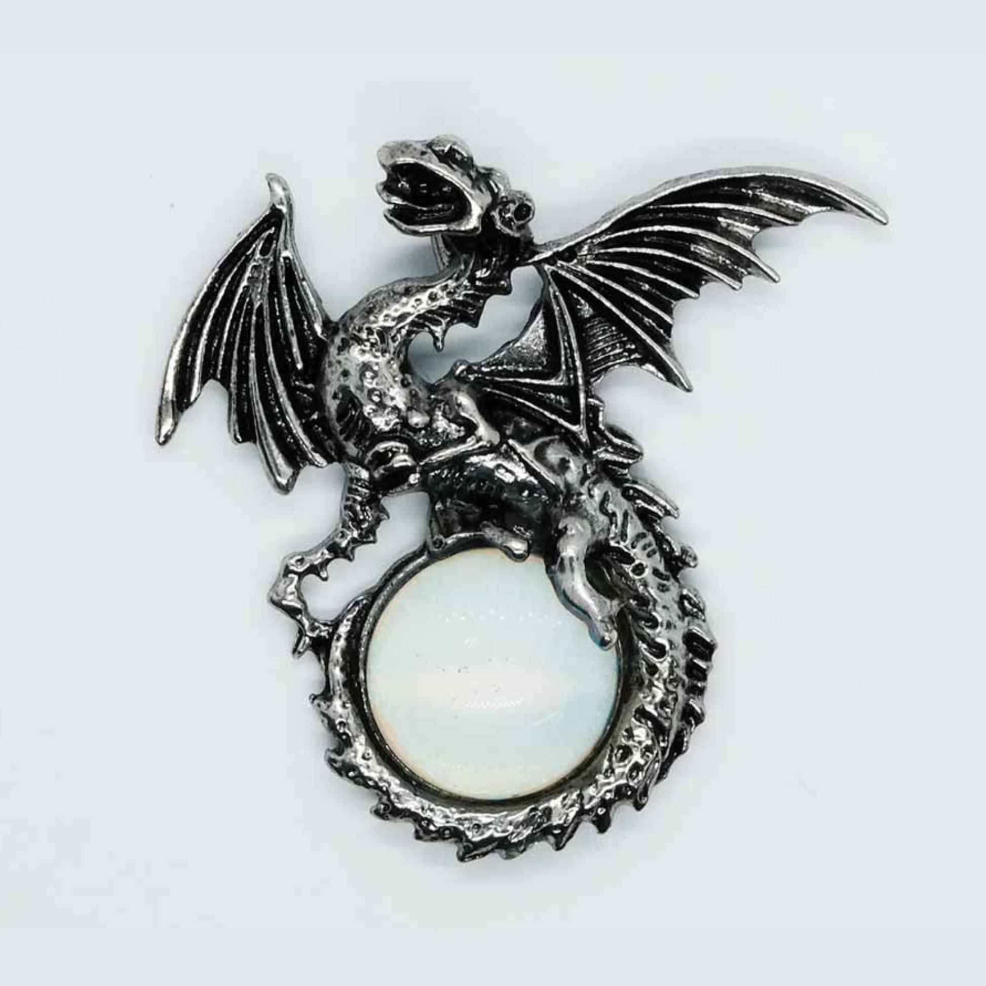 Opalite Dragon on Ball Pendant Necklace including your choice of an 18" black waxed cord or silver-plated chain