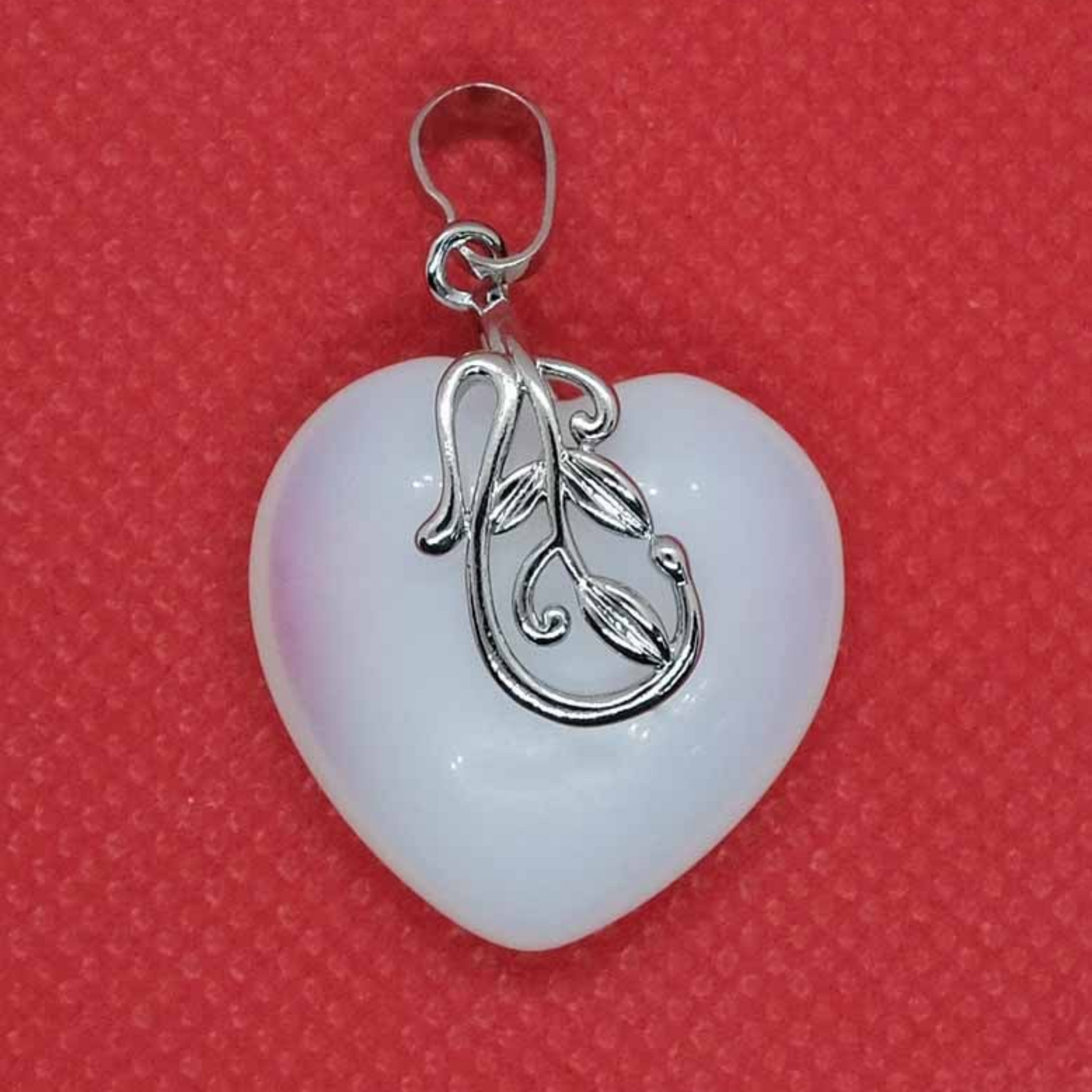 Opalite Flowery Heart Pendant Necklace including your choice of an 18" black waxed cord or silver-plated chain